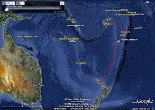 Beautiful night followed by a beautiful day! Southern Cross, which appears on the flag of New Zealand, was clearly visible all night. But the wind dropped to a dismal 10 knots around midnight, and we buggers has 4 / 5 knots is hard for several hours ... the day the wind came back after a squall of rain, which gave way to 8:00 has an immense blue sky. 15 knots of 100/110, sea almost beautiful, we march 8 / 10 knots. The sun does not left of the day. The boss has even indulged in a session of tanning on the roof of the roof, in the early after-noon ... That said, I found it brave, it was kind of nice sun Berck-Plage, in the Pas de Calais in September ... It does not tell you everything ... She does not pass, you will understand, and besides, just imagine, me either! It is probably for this reason that I do not dawdle on the high seas I knew that the end of term would be more difficult to manage than the beginning, with light winds and uncertain. But, unlike the boss, I'm not going to complain about this crossing .. It was a sensitive part of our journey, with a niche has meteorological tradable goods. History does not end up in a fucking gale, frequent in the area. The oceanic area between New Zealand and Tonga-Fijis, 1000 miles north, sometimes resulting in the past has outright disappearances of boats, caught in the big bad weather. I had it in memory. The chosen niche has been excellent, allowing us a crossing in 6.5 days from Tofua in satisfactory condition, although one would wish a crosswind or slightly on the back of the beam rather than 70 ° port . The reverse crossing, departing from New Zealand to Norfolk Island and New Caledonia, we will end in March, resuming the sea, seems to me easier, since the most sensitive at the wrong time corresponds to the first 500 miles from the North Cape of the North Island, a section of the route that can be performed in 3 days with good weather coverage departing. The captain is happy, therefore, could hardly dream better.
